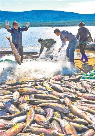 抚远市渔民捕获大马哈鱼。 陈 雷摄(人民视觉)